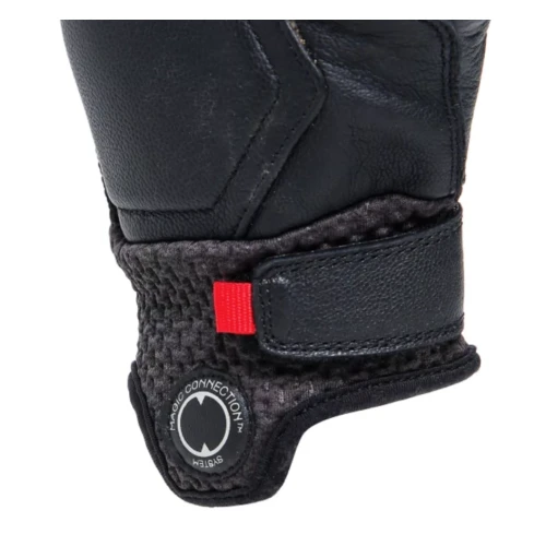 Dainese Magic Connection™ technology features a magnetic system on the cuff that allows the glove to be secured conveniently to compatible Dainese jackets, so it’s always to hand and doesn’t get lost when refueling or during short stops.