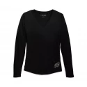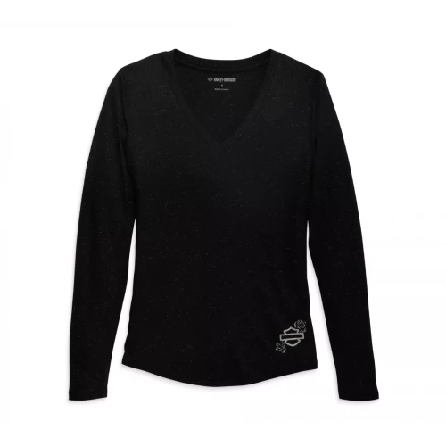 Styled from supremely soft modal/poly/spandex, our Bonded Fashion Long Sleeve Knit Top delivers a weightless, comfortable feel. Zoom in for its added bling—gorgeous silver metallic flecks to catch the light and give you a glow. Finally, subtle metallic print graphics at the hem quietly rep the open Bar & Shield so you can easily mix, match, and layer this piece. Check this one off your wish list today.