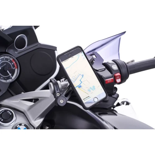 - Funksjonell, universaladapter for montering av smarttelefoner på clip-on-styrer med styre- eller rørfester med 22 mm diameter